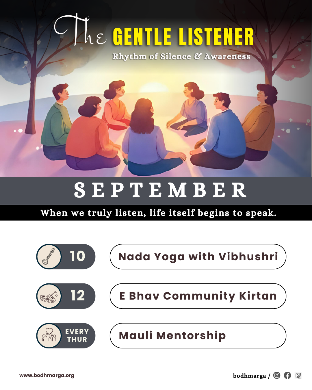 In the Presence of a Mauli, the Power of their Conscious Compassion brings clarity, regulation & ease in the Harmonious & Peaceful environment they create - chaos, helplessness & anger disappears, bringing clarity without rigorous effort, practice or knowledge & completely transforming the individual. This forms the foundation of Bodhmarga.