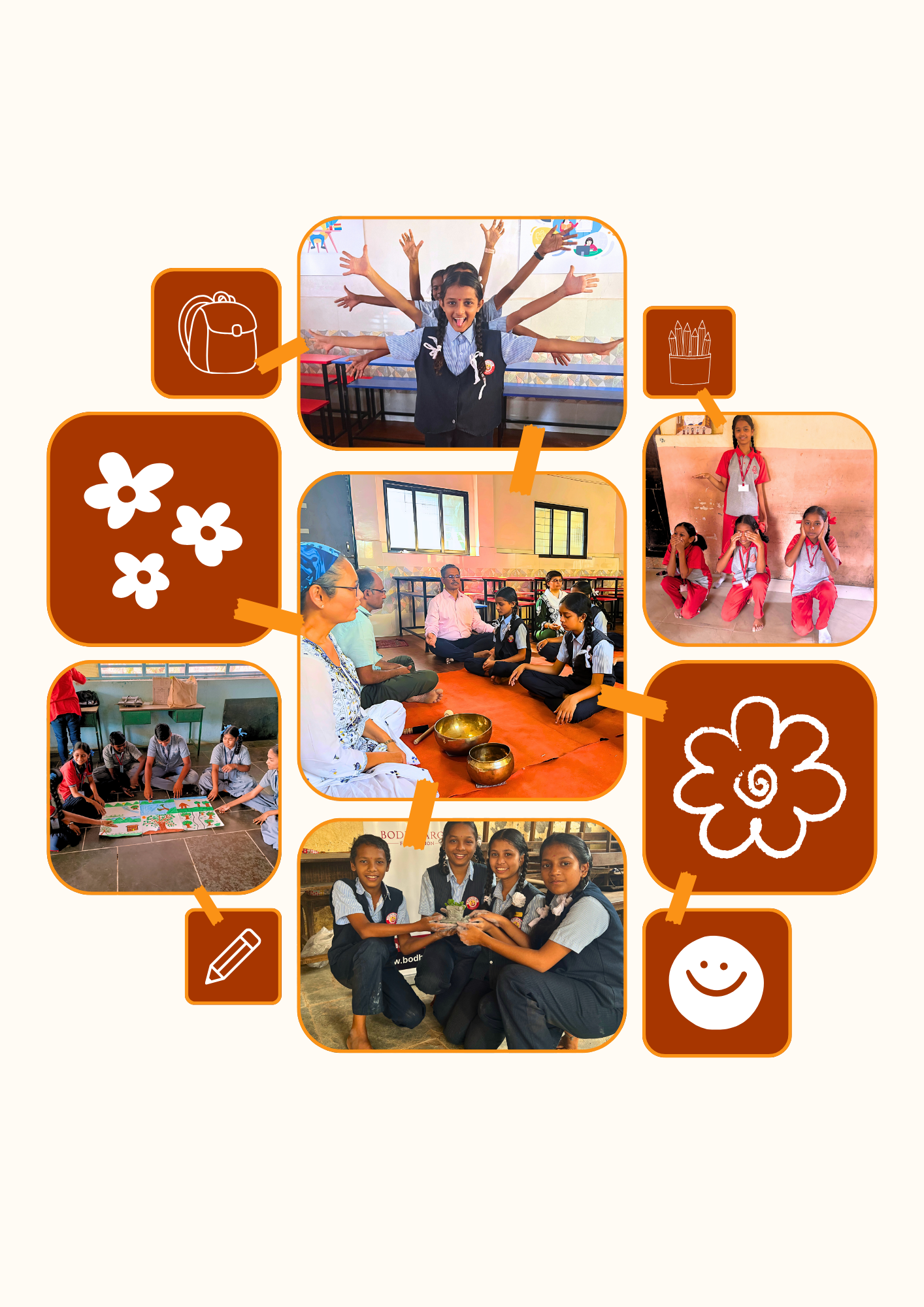 The Mission Lehar pilot project, initiated in three schools, integrates sound, prayer, and theatre into education to instill acceptance and harmonious learning in children. With workshops for orienting teachers, maulies and volunteers and sessions of well-trained maulies facilitating the sessions, we garnered the trust of the children and school staff alike in no time. This initiative is founded on Bodhmarga’s vision of Sahajoddhaar, emphasizinginner peace leading to world peace. We seek to bring the positive impact of sound tracks to underprivileged communities, enhancing their quality of living, learning, and being while providing those on the spiritual path, a way to make difference in the society and apply the easeful conscious philosophy of Bodhmarga in a way which allows all to be uplifted. The project aims to nurture peace in young minds, equipping them to face the outer world with enhanced self-awareness, interpersonal harmony, self-leadership, and resilient self-esteem. By providing mental and emotional stability through the compassionate presence of a Mauli, we create an environment where children can grow and learn in peace.
